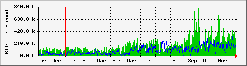 Max Out: 793.8 kb/s (155.0%) Average Out: 168.9 kb/s (33.0%) Current Out: 256.5 kb/s (50.1%)